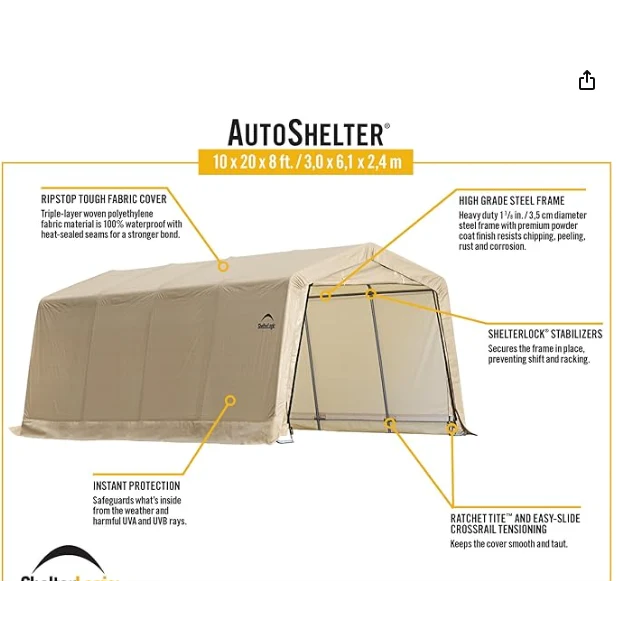 سڀني اسٽيل جي ڌاتو مان ٺهيل 10 x 20 X 8-فوٽ فريم جيڪو 1-3 / 8 انچ موٽو آهي، طاقت ۽ استحڪام فراهم ڪرڻ