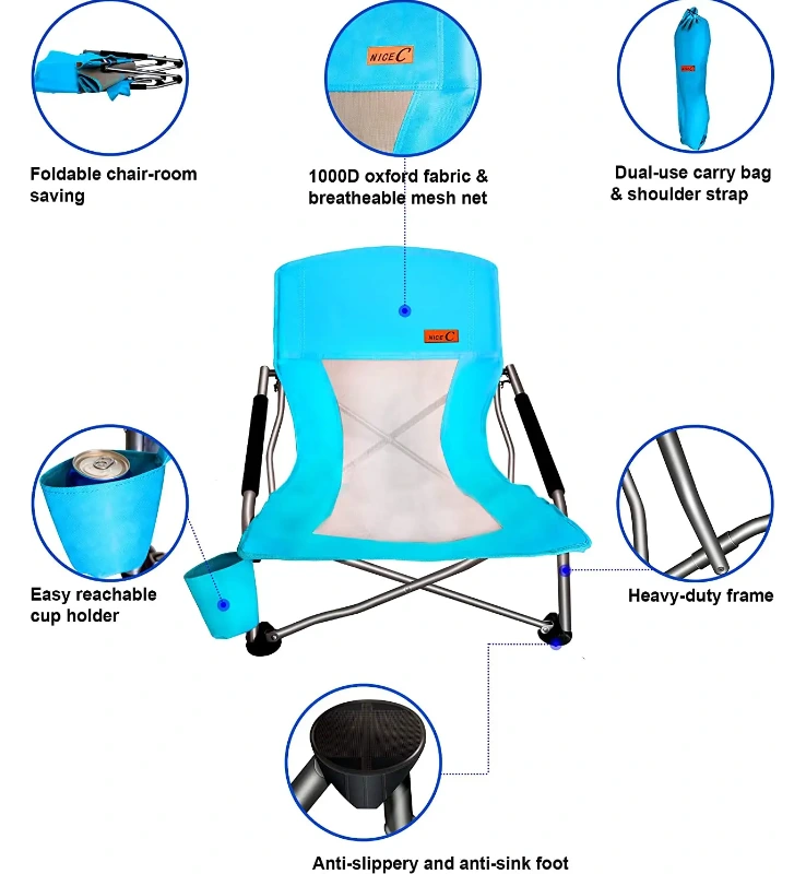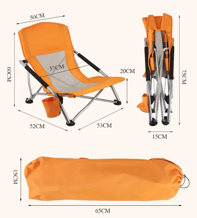 فولڊنگ ساحل جو سيٽ، ڪرسي کي ترتيب ڏيڻ تمام آسان آهي: صرف فريم ڌار ڪيو ۽ پنهنجي سيٽ جو مزو وٺو. اسٽور ڪرڻ لاء، صرف فريم کي گڏوگڏ هڪ ٻئي کي گڏوگڏ ڌڪيو ۽ ان جي کڻڻ واري ڪيس ۾ وجهو. صاف صاف ڪرڻ به آسان آهي: صرف صابن ۽ پاڻي سان صاف يا صاف صاف ڪريو.