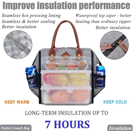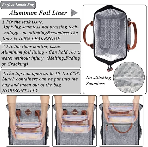 ٻاهرين ايلومينيم جي ورق وارو ٿلهي وارو ٻج. ان موتمار مدت واري مدت ۽ مٿي پنروڪ زپ جي ڪري، هن موهيندڙ لنچ جو هڪ وڏو مهر آهي. خوراڪ ۽ گرمائش جي وقت ۾ کاڌو ۽ گرم / گرم ڪرڻ جو وقت آهي، لميٽيڊسز، ڪم ڪرڻ، سفر ڪرڻ، اسان جي شين جو تجربو، اسان جي کائڻ واري تجربي کي وڌائڻ لاء ڊزائين ڪيو ويو آهي.